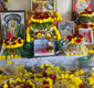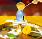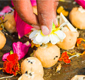 simultaneously offering either holy leaves, holy water, honey, Milk, curd